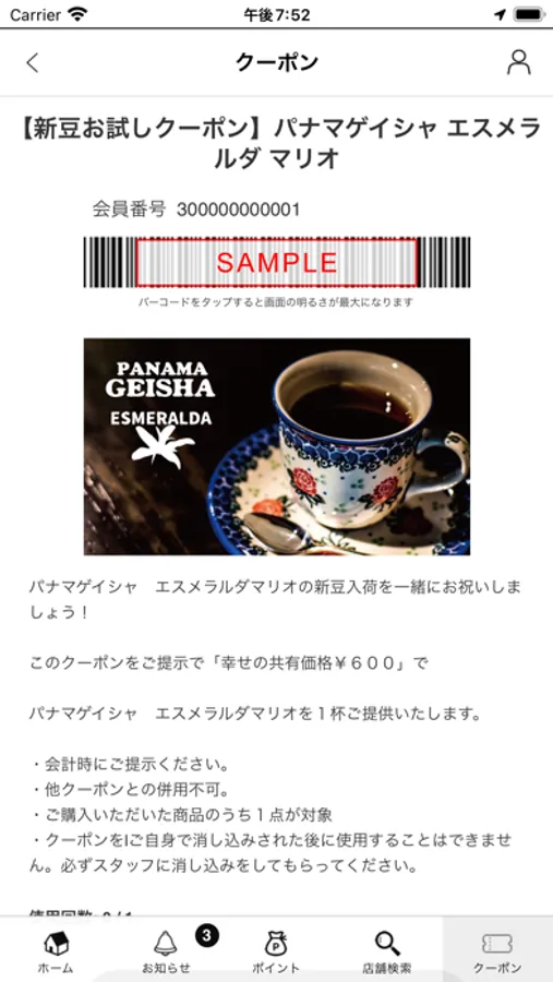 ・会員証バーコード(店頭でご購入の際にレジでご提示ください)