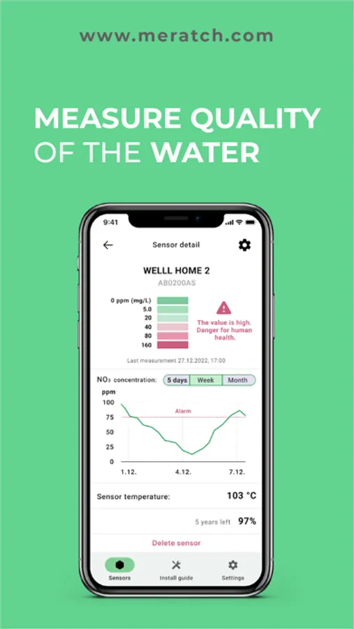 No matter where you are located, our app ensures you're never more than a click away from your water data. All you need to do is connect your IoT device (MERATCH water level or water nitrates / nitrites sensors) with the MERATCH app.