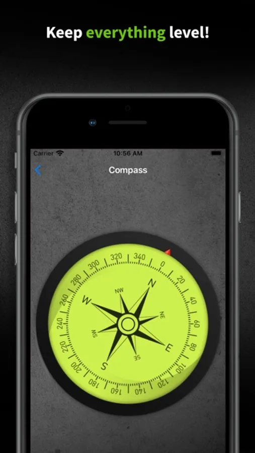 Choose from different leveling options, the 3 in 1 bubble level, the clinometer (Inclinometer) which allows you to measure the angles of sloped lines, or simply lay your phone on a surface or on its side like a traditional level. This app also has a compass with a bubble level inside which allows you to easily check your heading and level simultaneously.