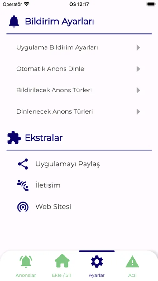 Bildirim seçeneklerinden, istediğiniz ilan türlerine ait bildirimleri açıp kapatabilirsiniz. Anlık bildirim seçeneği aktif olan ilanlar, ilan yapıldığı anda bildirim olarak telefon ekranında görüntülenir. Anlık dinleme seçeneği aktif olan ilanlar, ilan yapıldığı anda otomatik olarak mobil cihazın hoparlörü üzerinden oynatılır. İlan öncesi gong seçeneği aktif edildiğinde, ilan oynatılmaya başlamadan önce gong sesi ve ardından ilan başlığı duyulur, sonrasında ilan oynatılır.
