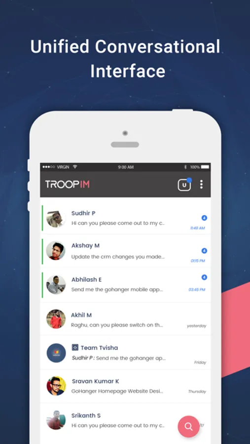Troop Grit Premise is a compact office chat application with amazing security and feature implementation facilitating safe and secured business data sharing. It offers a collaborative work forum for business needs. Troop Grit Premise for business is the sure shot tonic for business assisting you in reducing the time used up for manual data circulation and team work. Troop Grit Premise, the business chat application is one among all group chat apps which comes with unlimited group creation. It is not only instant messaging for business but also lets you share files of diverse format along with current location and contacts. With its recent version, Troop Grit Premise is good to go for team collaboration across corporates and will be updated with many more professional features which are on the drawing table.