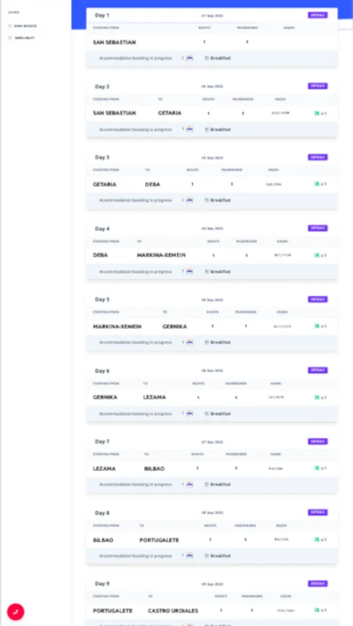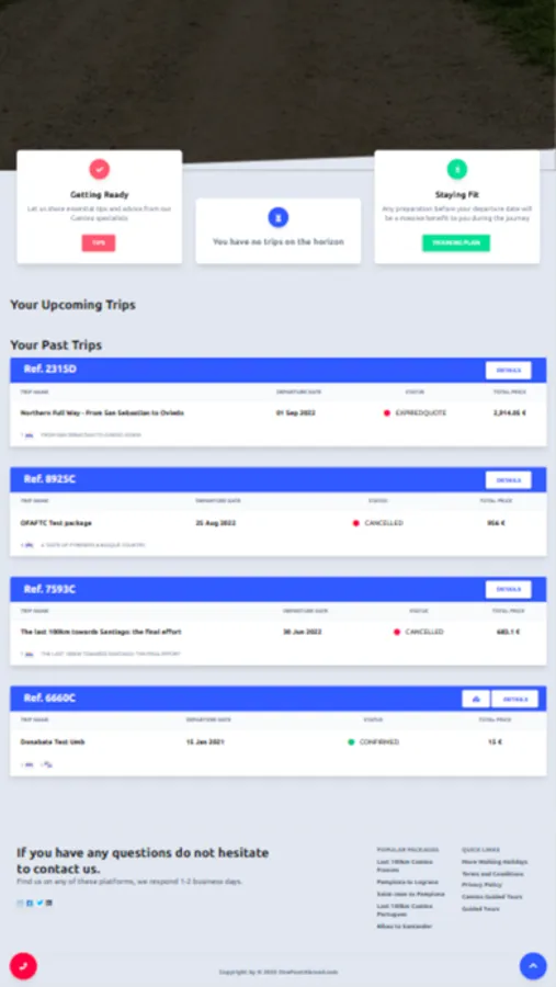 Once you have a booking with us, you will be able to access your trip details. This includes the list of all of your the services we have booked for you. Get your accommodations details and location. Contact them or get direction at the touch of a finger. See your transfer details too as well as other service (day tours etc).