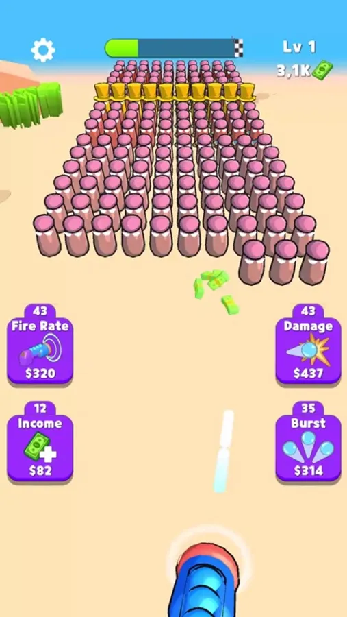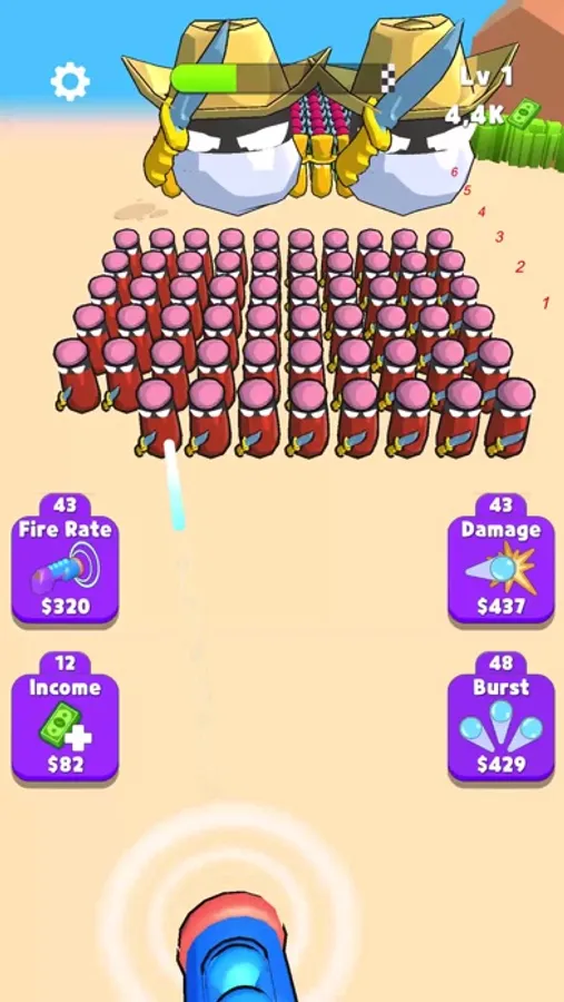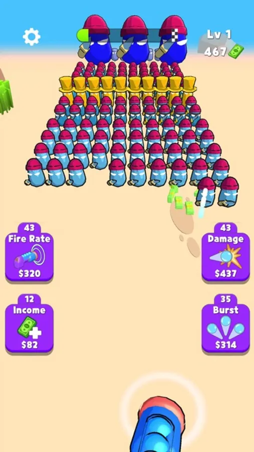 Kill the enemies in the advancing horde with the weapon you developed, clearing the area as you progress. Collect the powers located in specific areas.