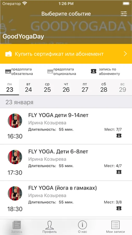 - Записаться на групповые занятия.