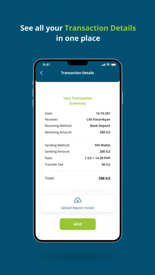 Different types of transactions are available: bank deposit, cash, and PAI wallet. Recipients will be able to get the money with cash or bank deposit.