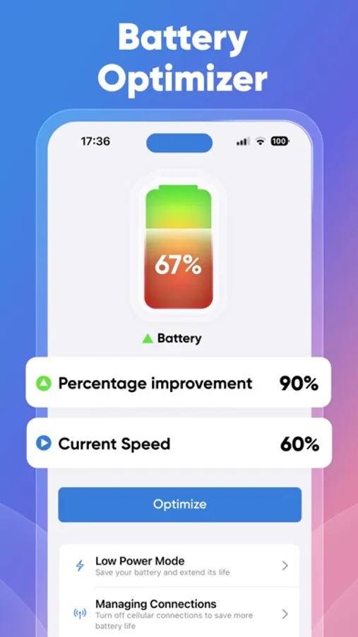 But that's not all, Cleaner also provides valuable tips and guides to help you save battery life and keep your phone running at peak performance. Whether you're constantly on-the-go or just want to make sure your phone lasts throughout the day, our app has got you covered.