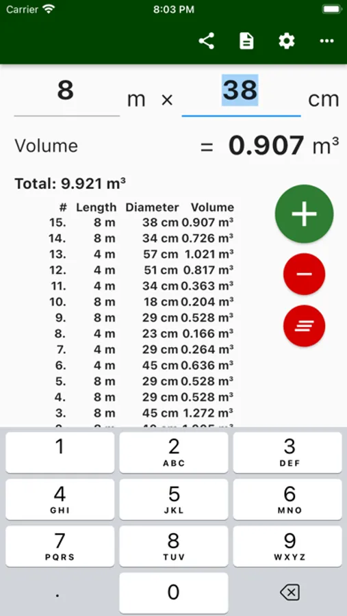 Calculate timber volume in cubic metre, cubic foot volume (CFT), or board feet (CBF). Compute round timber volume from a diameter and length. Create a list and share it over email, other sharing apps and cloud storage services for free. Create an Excel file report that can easily be imported into Excel and other spreadsheet applications.