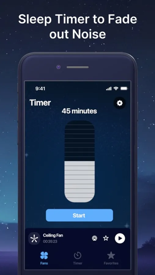 Fan Noise App also includes a timer function, so you can set the duration of the noise and not have to worry about turning it off in the middle of the night. Additionally, the fade out feature allows you to avoid being jolted awake by an abrupt stop of the noise.
