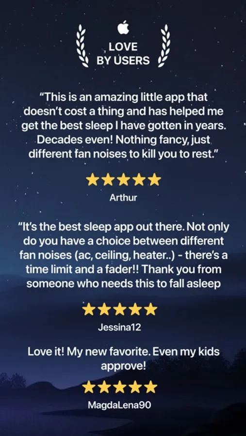 Download Sleep Fan now and start enjoying a peaceful and restful sleep every night.