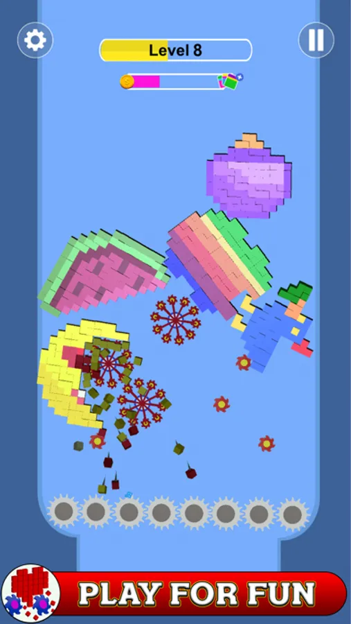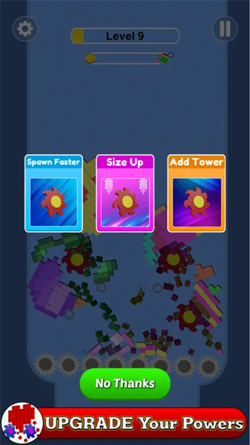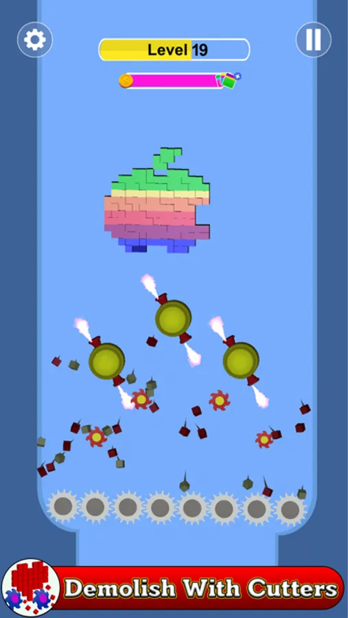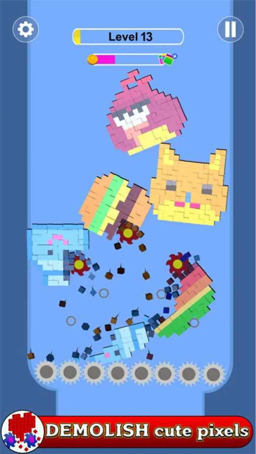 - Destruct all the falling pixels and collect gold coins to Upgrade your powers by adding tower, Spawn faster, Size Up to demolish pixelated objects as soon as possible.