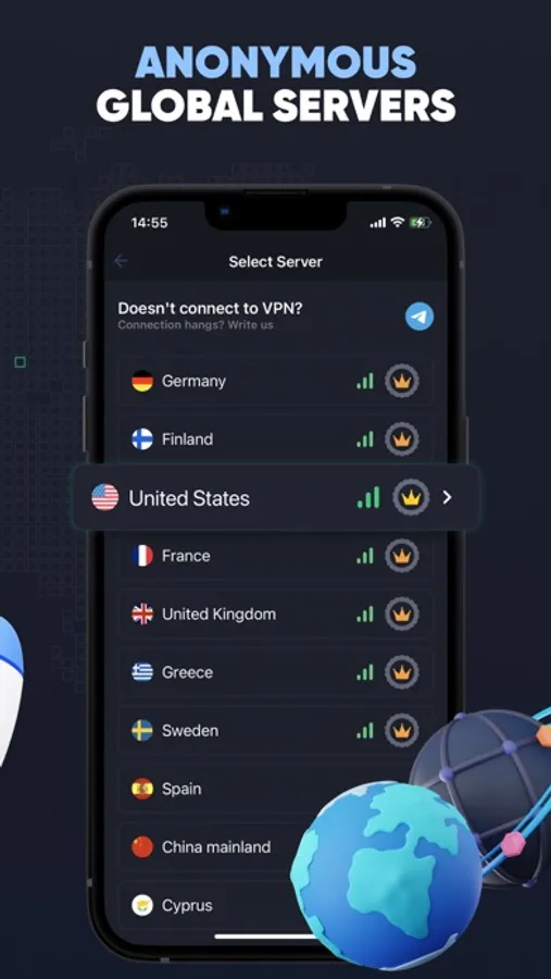VPN Fox for iPhone is easy to use: select the VPN country and enjoy the connection.