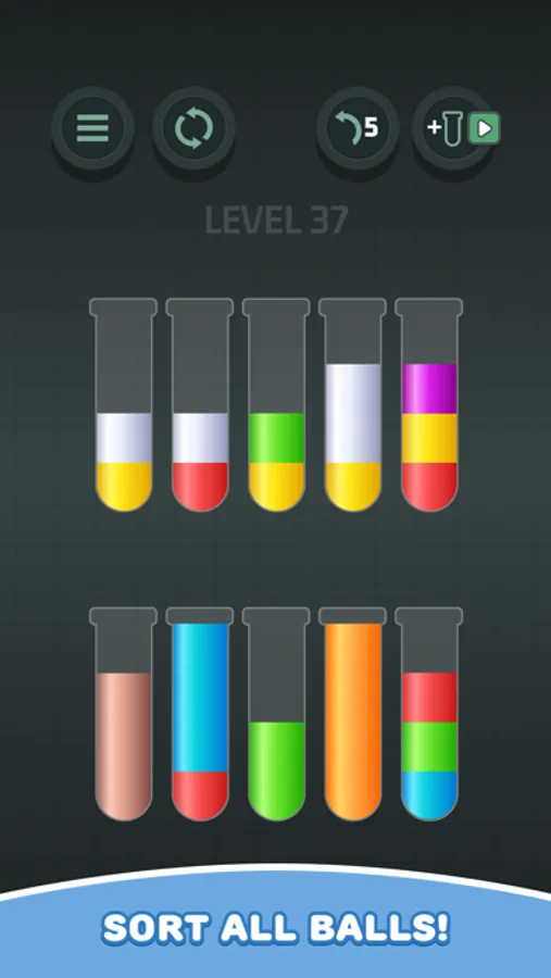 - Follow the only game rule: while sorting liquids by color, you can only place a liquid of the same color on top of the other one.