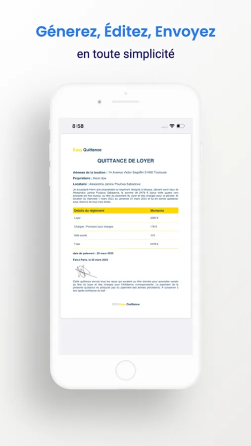 Générez, partagez, tout vos documents (quittance de loyer, avis d'échéances, contrat de location et bien d'autre) en un clique.