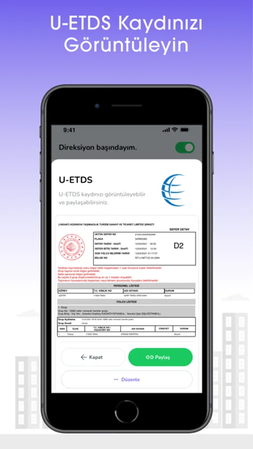Tanımlı görevleriniz için U-ETDS kaydı oluşturabilir, sizin için oluşturulan U-ETDS sefer çıktısını görüntüleyebilir veya güncelleme yapabilirsiniz.