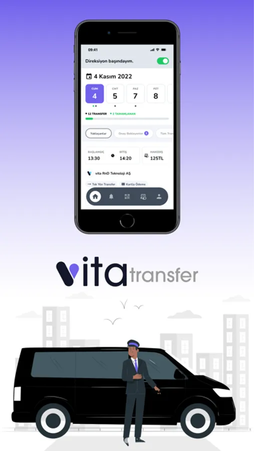 Karayolu taşımacılık sektörünün online pazar yeri vita taşımacılık sistemlerinin bir parçası olan vita Drive | Transfer;VIP taşımacılık, havalimanı transfer, shuttle, taksi taşımacılığı sürücüleri ve araç sahipleri için geliştirilmiş mobil iş takip ve yönetim uygulamasıdır.