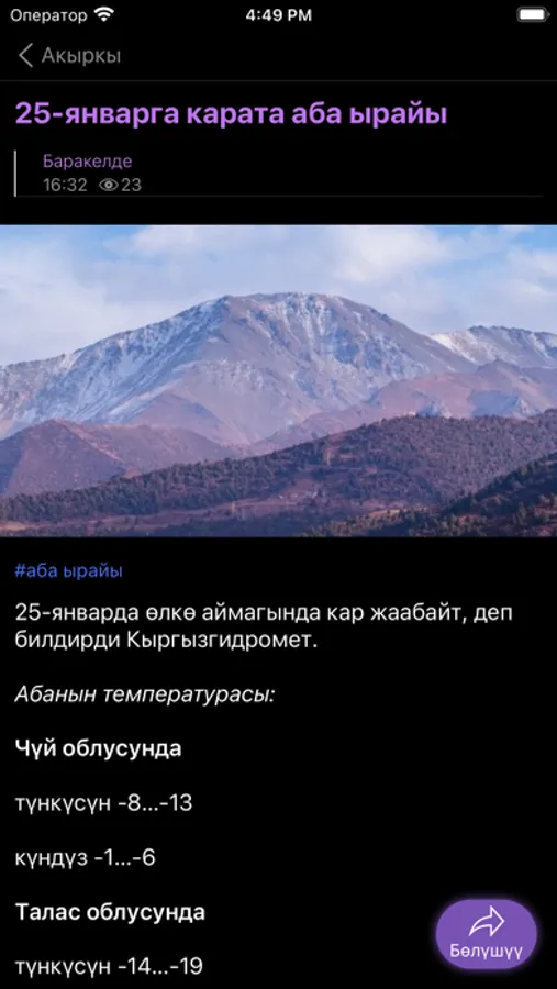 Тиркеменин жардамы менен смартфондун ээси Кыргызстандын аймактарындагы ар түрдүү маалыматтар менен ыкчам кабардар болот.