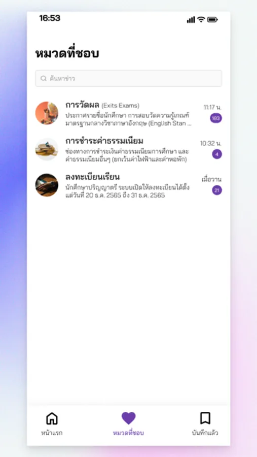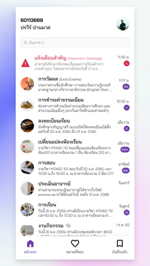 แจ้งเตือนวันเเละเวลาสอบ/ ห้องสอบ