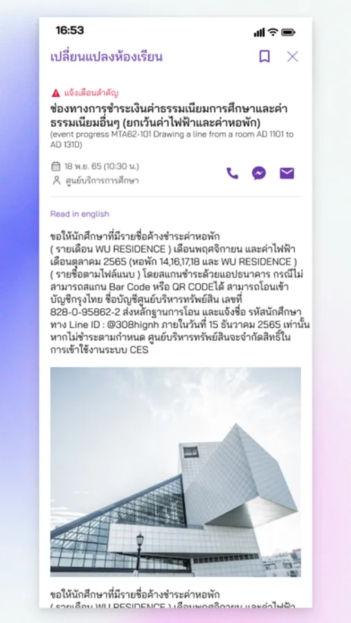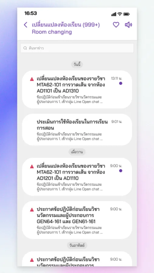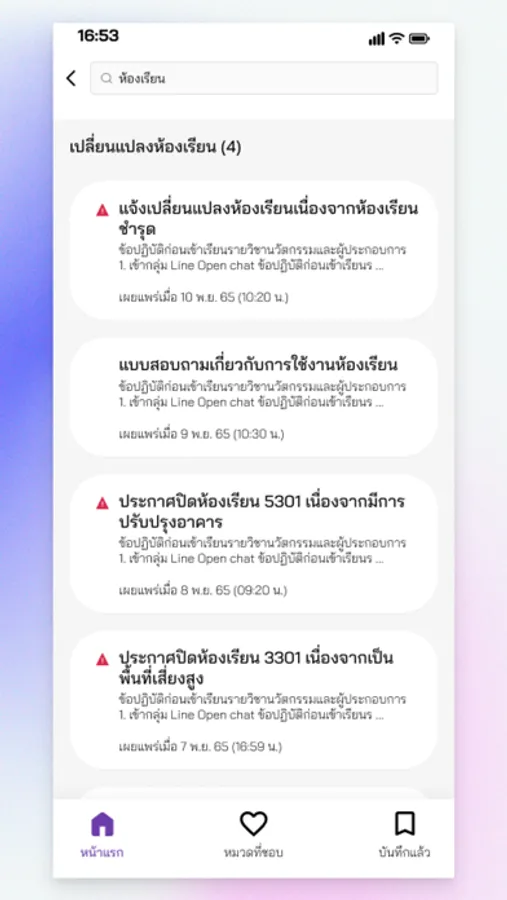 แจ้งเตือนการเปลี่ยนแปลงอาคารเรียน/ ห้องเรียน
