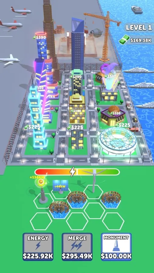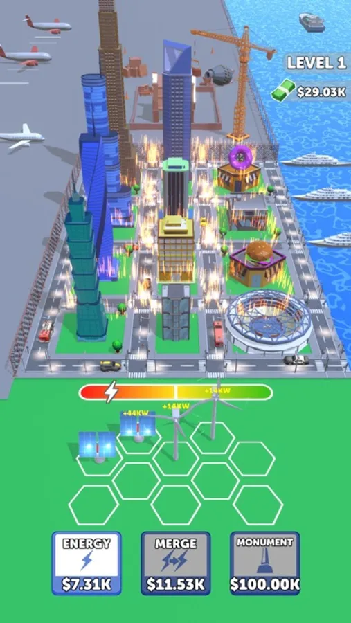 Give electricity to the city and upgrade it while adding new energy buildings.
