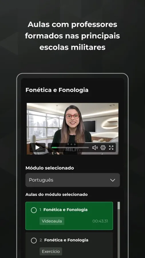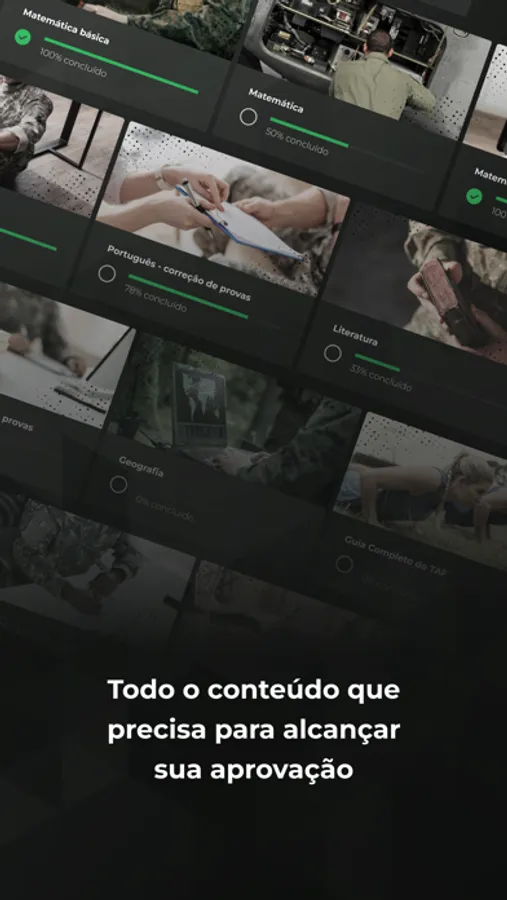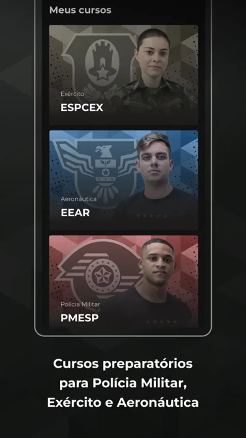 O Eu Militar é especialista em cursos preparatórios para a carreira militar. Feito para quem começa do absoluto zero. Aqui, você encontra tudo que precisa para alcançar sua aprovação nos concursos. Estude no seu tempo com professores formados nas principais escolas militares.