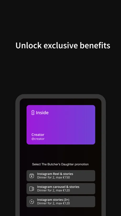 We are a membership for foodies and content creators. With Inside Membership you unlock exclusive benefits at hotspots in Amsterdam with the content you create on your socials. Apply on insidemembership.com to find out more.