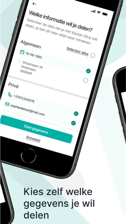 Jij bepaalt met wie je welke informatie wilt delen. Vera geeft jou volledig inzicht en controle over wie toegang heeft tot jouw gegevens