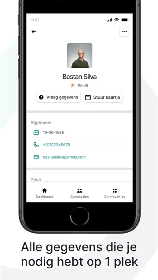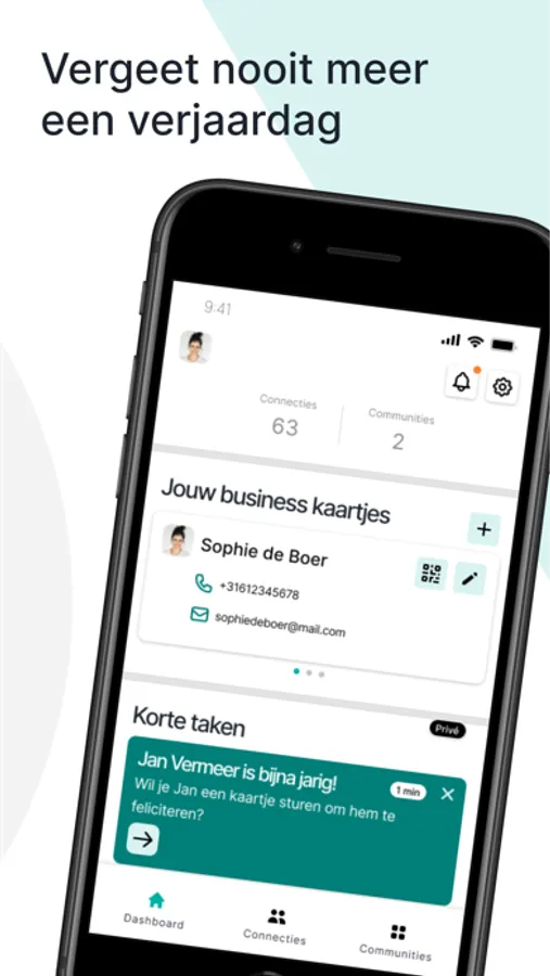 Maar Vera Connect is meer dan een contactenlijst. Zo maken we het veel simpeler en privacy-proof om bekenden aan elkaar te introduceren, en kan je gemakkelijk kaartjes en geschenken sturen naar de mensen om wie jij geeft.