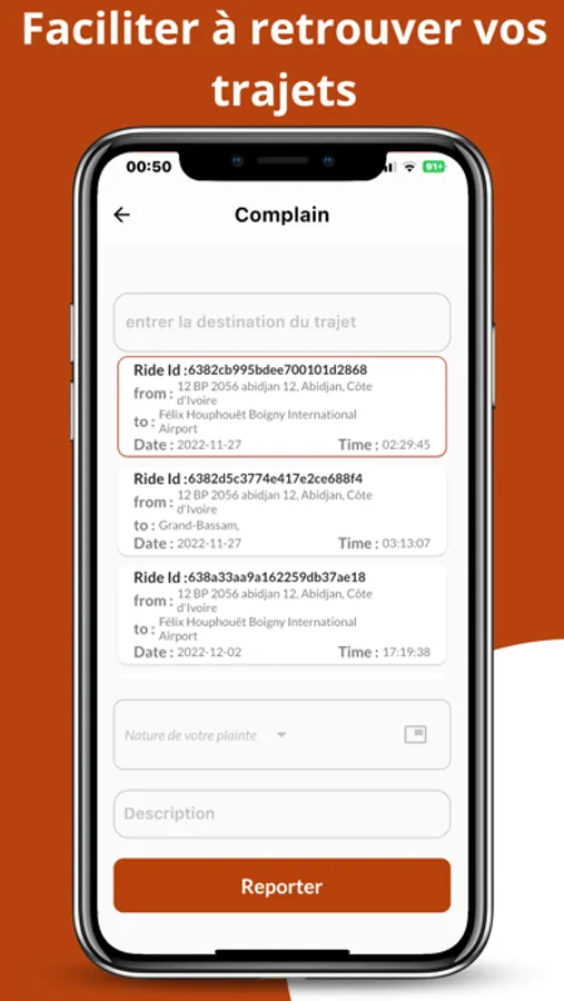 Application d'aide à la sécurisation des biens et personnes pendant leur trajet en ayant l'identité et l'immatriculation du véhicule emprunté.