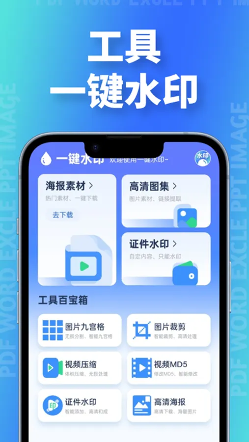 一键水印专业水印工具,视频压缩,视频解析,证件水印,图片压缩等。
