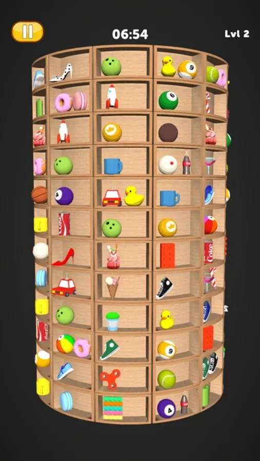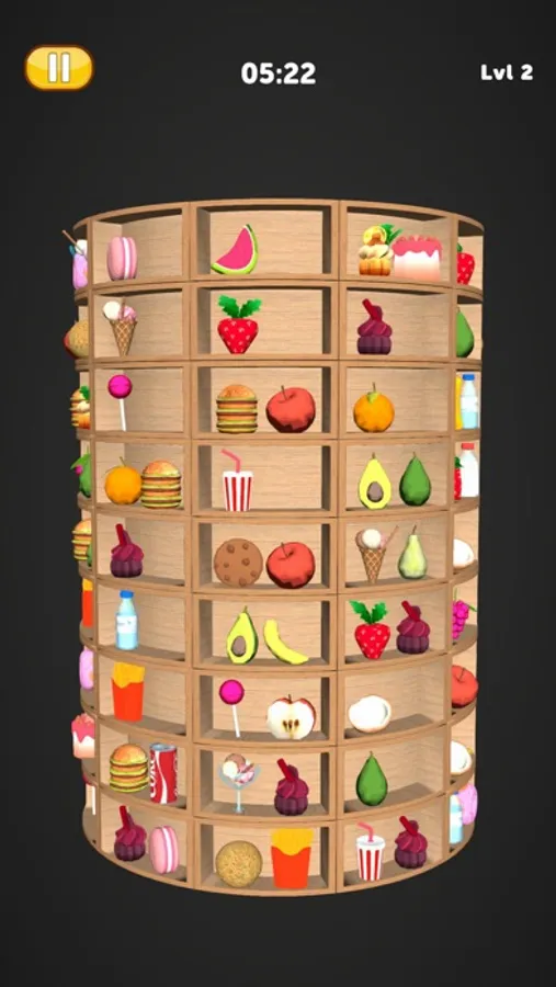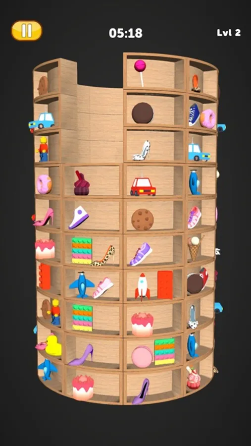 SHELVES is a 3D pair-matching game where you match 3D object pairs by replacing shelf units on a rotating rack.