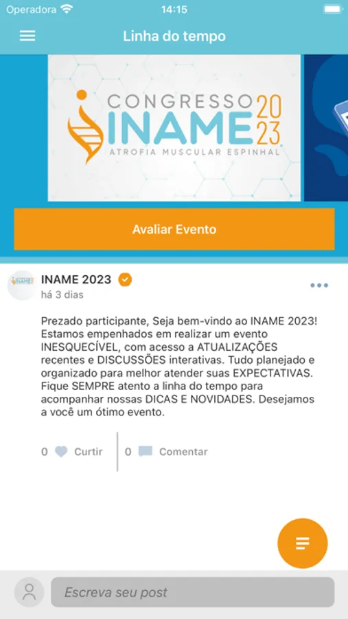 Ao final do evento, também vamos querer a sua opinião, que poderá ser dada respondendo a pesquisa através do próprio aplicativo.