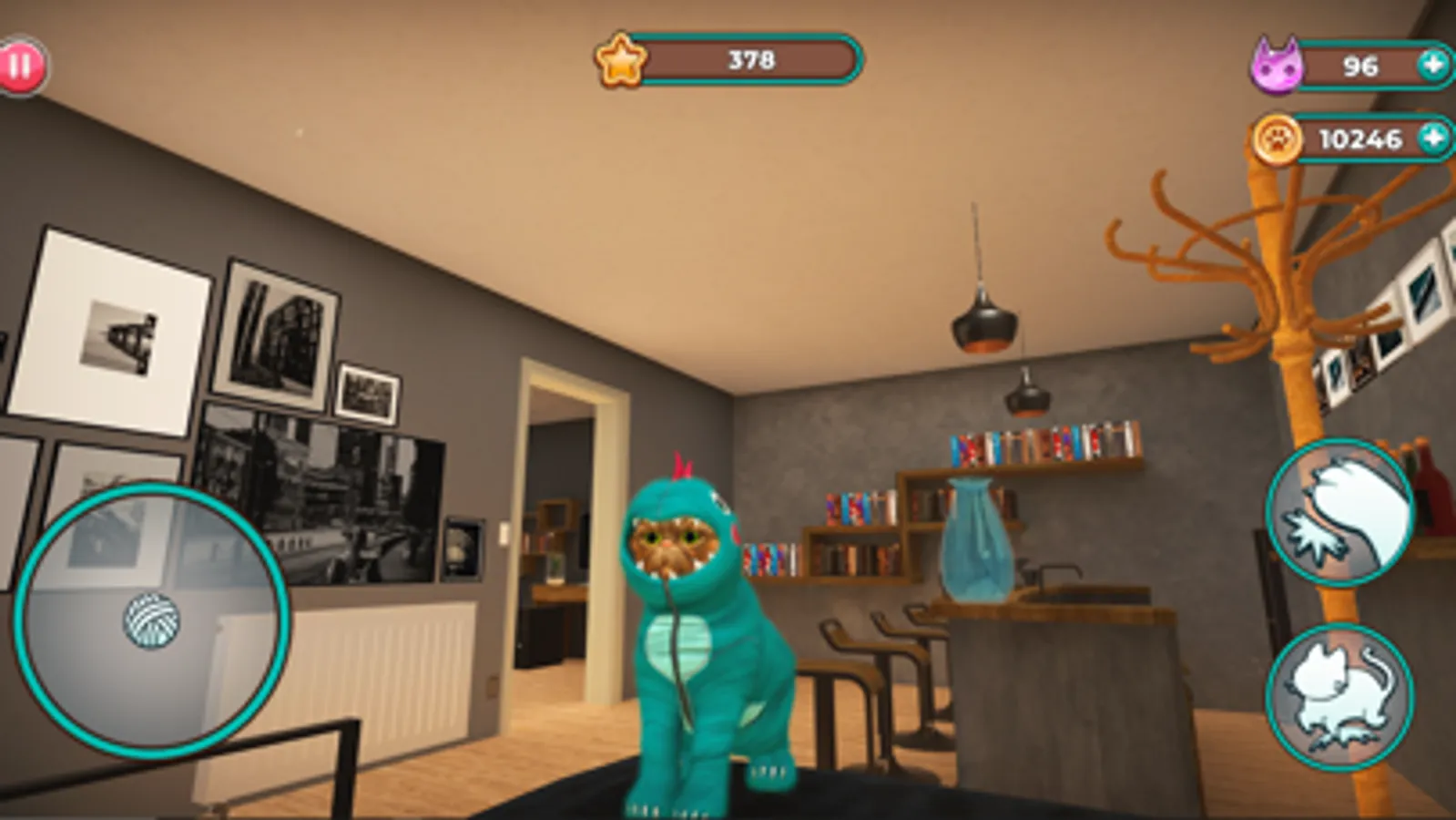 Navigate effortlessly with simple controls: utilize the left joystick to move your cat, employ the jump button on the right to take flight, and swipe to explore your surroundings. Unleash the power of your marvelous pussycat by utilizing the hit button to smash objects.