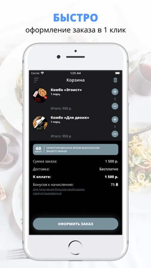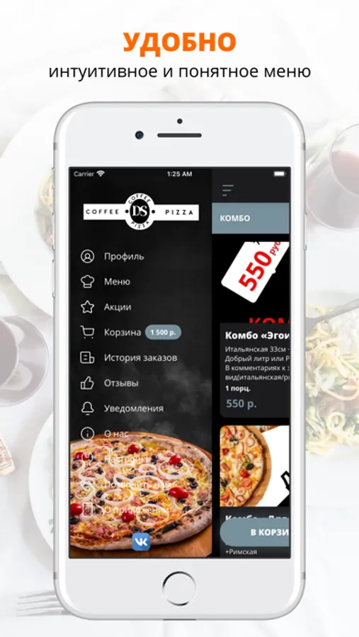 Скачивайте наше приложение, оформляйте заказ и наслаждайтесь любимой едой, где бы Вы ни были! Приятного аппетита!