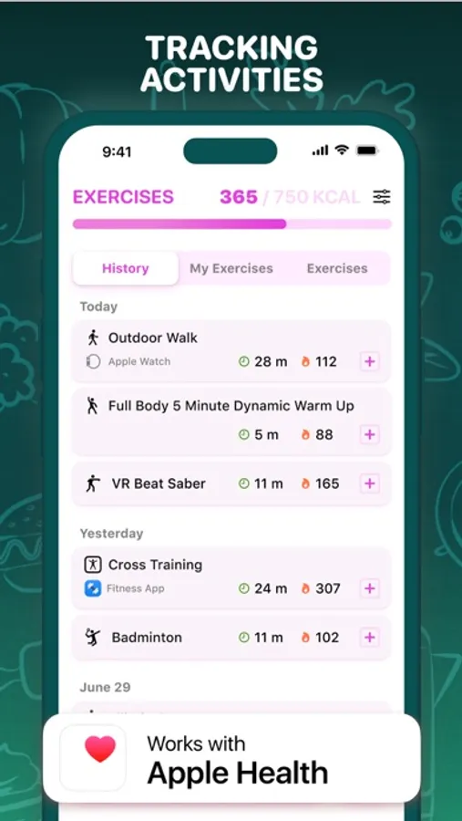 Our application uses HealthKit. You can easily transfer your data from Apple Health to our app to track your calories and steps, as well as your physical activity.