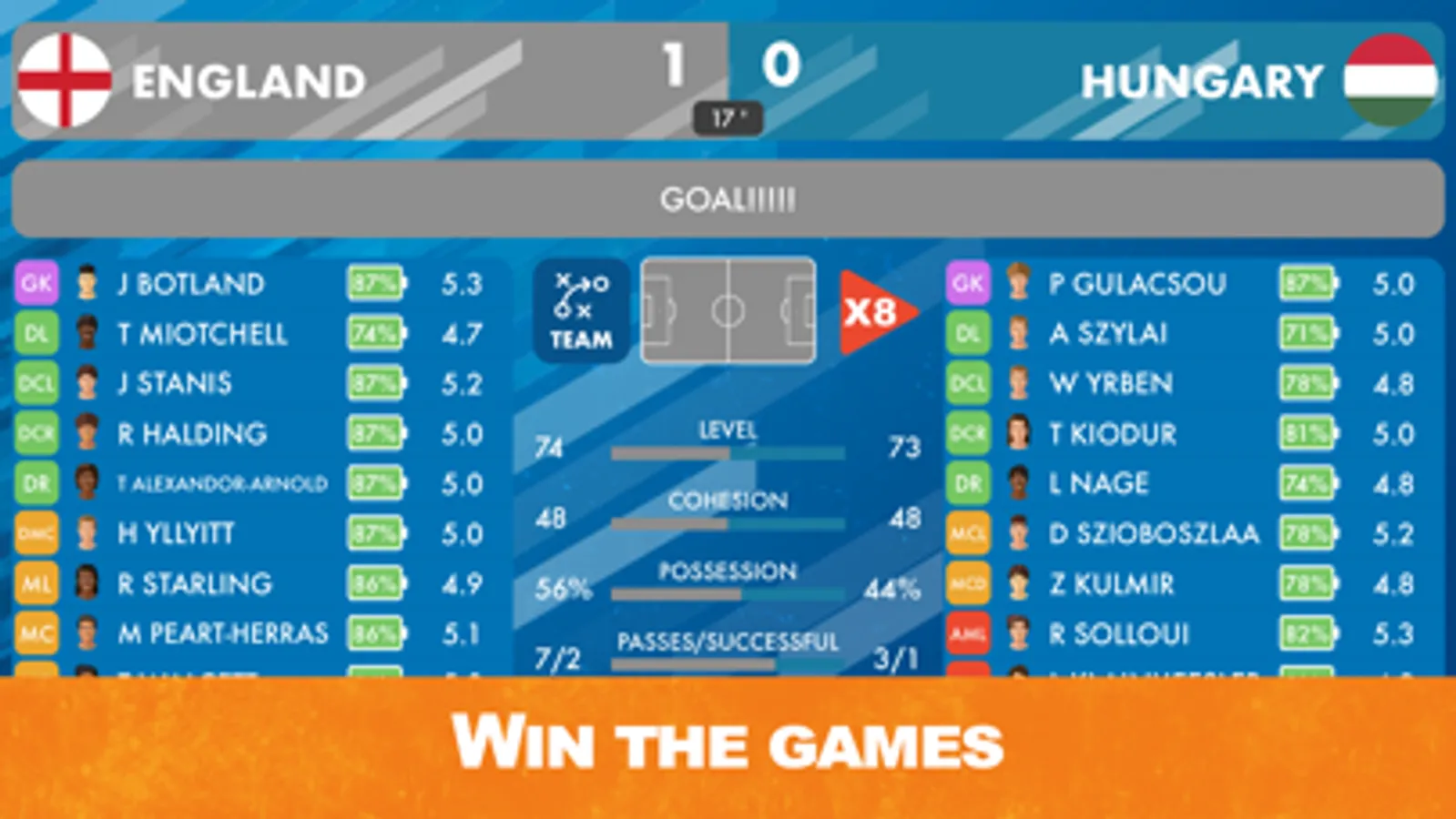 In Football National Manager, you will start your career at the head of a nation of low reputation. But improve your team, select the right players and make the right choices during games and the doors of the greatest nations will open to you.