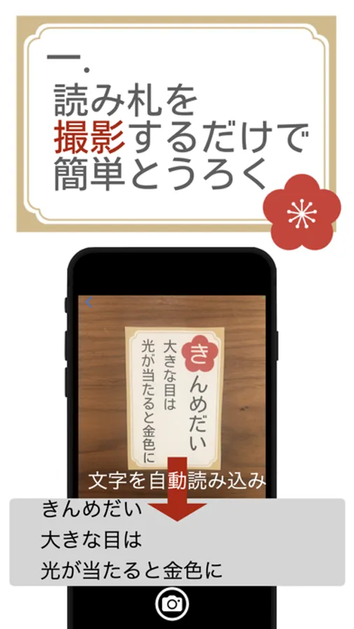 (一.)読み札をカメラで撮影するだけで、読みを簡単に登録できます(自動文字認識)