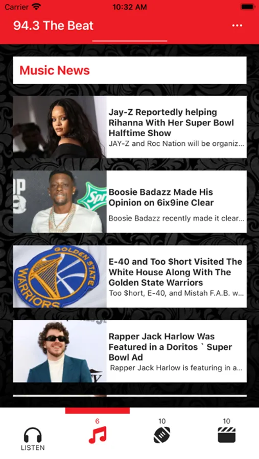 Listen to 94.3 The Beat and all your favorite on-air talent. Get all the Live & Local information you have come to expect from 94.3 The Beat. Catch up with the latest in Music News. Find out what’s going on in Hollywood. Stay up on events in the Sports world. You get all the information you want right on your mobile device!