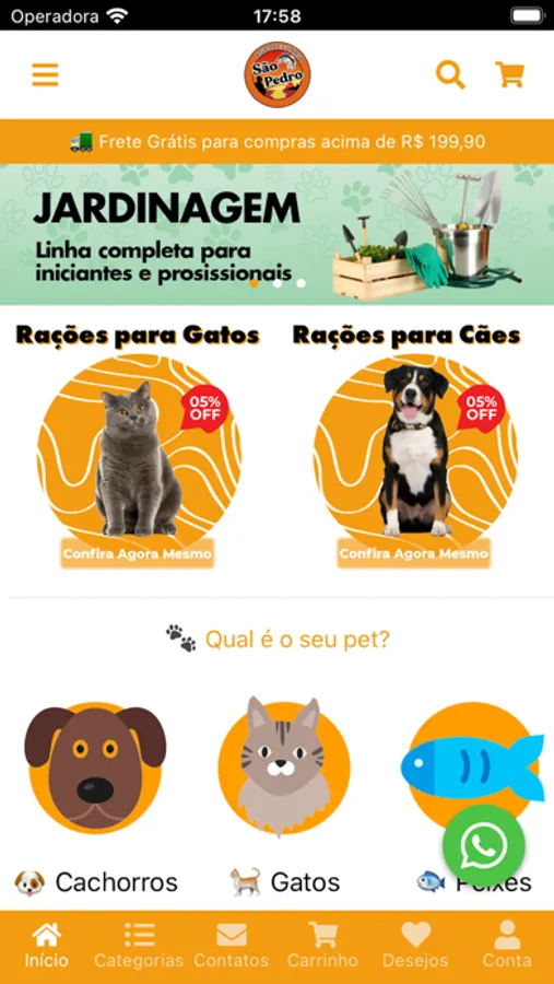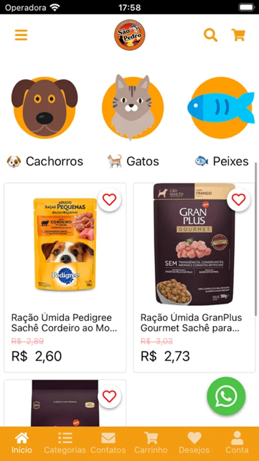 Com o aplicativo da Agropecuária São Pedro ficou mais prático encontrar brinquedos para pets, remédio para pets, roupa para cachorro, roupinhas, repelente, ração para gato e cães, petiscos, gaiola para pássaros, arranhador para felinos, coleira, caminha, portão para cachorro, tapete higiênico, antipulgas, areia para gato, peitoral para cachorro e até doces e vinho para fazer a alegria do seu melhor amigo!