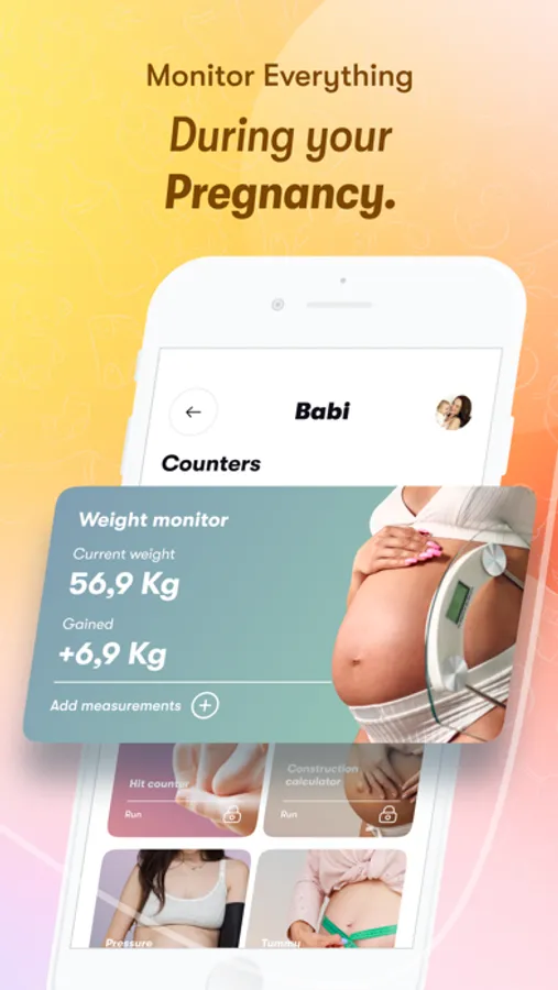 Babi offers an array of features to help you monitor your physical well-being during pregnancy. This includes Kegel exercises to support pelvic health, tracking your weight changes over time, recording your baby's movements and contractions, monitoring your baby's heartbeat, and measuring your waist size. These tools empower you to take charge of your health and ensure a smooth and healthy delivery for your baby.
