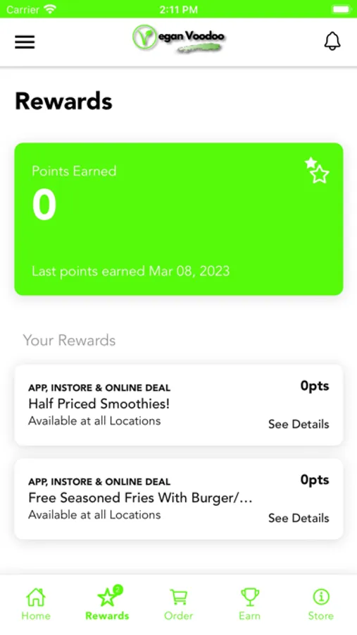 Vegan Voodoo App - Earn and track your rewards at participating stores