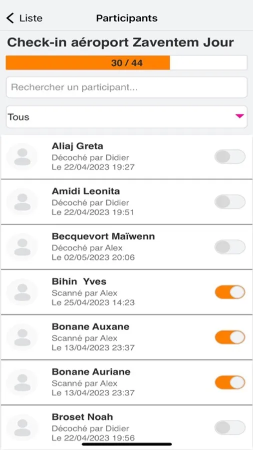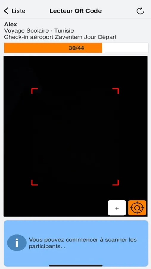 Vérification des arrivées ou départs de participants aux aéroports, dans les cars, lors d’excursions, d’event etc par le scan de leur QR code.
