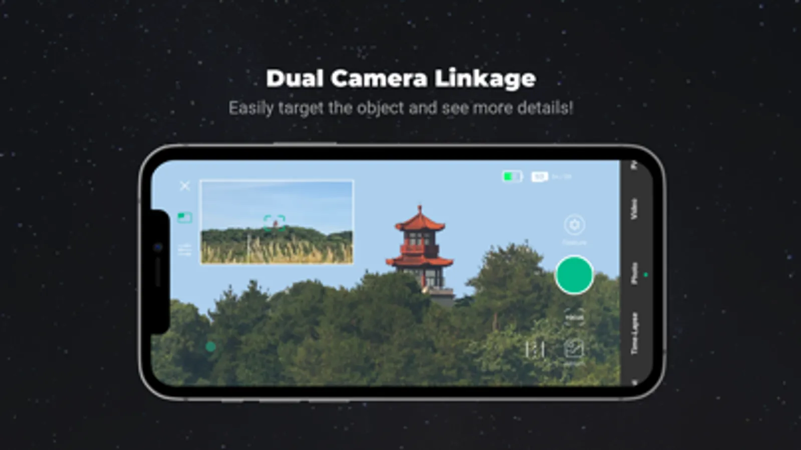 DWARF II can capture multiple images through 2-axis scanning, then stitch them into ONE picture. The pixel count can even reach ONE BILLION! Select panorama shooting mode. Try it for yourself! You will appreciate not only the whole scenery but also the minute details captured.