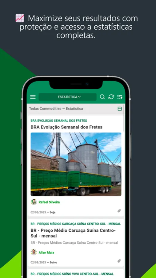 Conteúdo completo como análises de curto e médio prazo, notícias, cotações da bolsa, cotações físicas, indicadores econômicos, estatísticas agrícolas exclusivas, bases históricas, gráficos, vídeos, podcasts, cursos, palestras e informações climáticas de soja, milho, trigo, algodão , café, açúcar e etanol, bovinos, frangos, suínos, fertilizantes, arroz, feijão, bioenergia e agricultura de precisão.