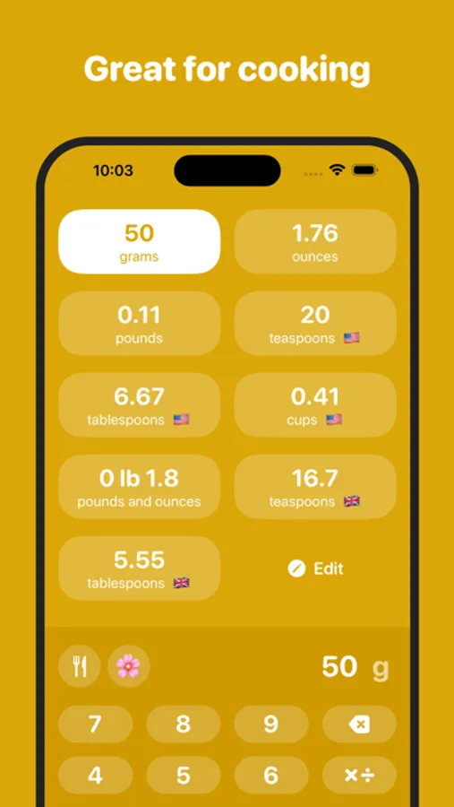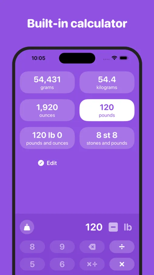 Easily customize & reorder your list of most used units for easy access. No need to manually switch between units, any values entered will be automatically calculated for all others.