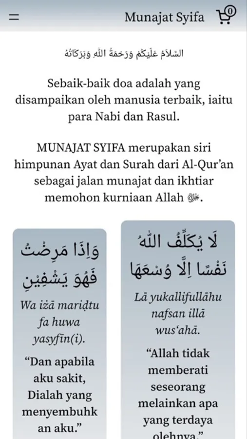 A collection of Verses and Surahs from the Qur'an as a way of praying and seeking the blessings of Allah. It's an easy-to-use app that contains authentic Du’a from Qur’an (only) with Audio Recitation, Translation and Transliteration for any Malaysian Muslim’s daily supplication and special occasions.