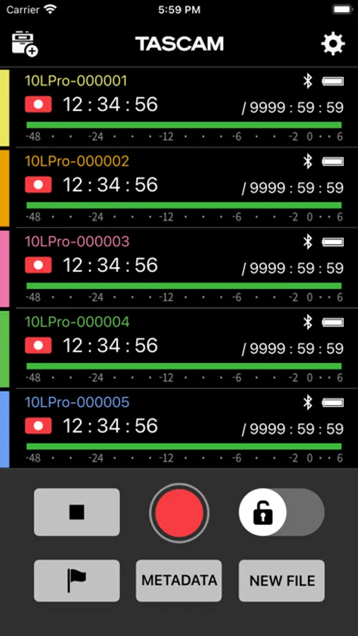 The DR-10L Pro CONNECT is an app that provides remote control up to five units simultaneously. This app enables to check device status and view the recorded waveforms real time for operation confirmation. Names and colors can be applied to individual devices for easy identification. Also, Metadata (project name, scene name, take number) can be recorded in the recording file (BEXT, iXML).
