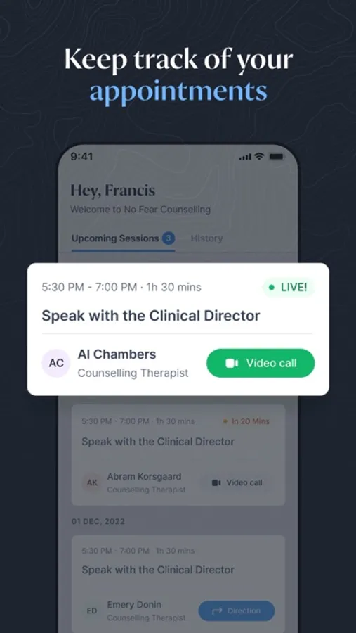 Introducing the telemedicine app that makes mental health support easily accessible and convenient. Our app connects you with licensed therapists and psychiatrists for online video appointments, allowing you to receive professional help from the comfort of your own home. Our platform also offers a variety of self-care resources such as guided meditations and mood tracking tools to help manage your mental health on a daily basis. Our team is dedicated to providing confidential and compassionate care to help you feel your best. Download now to start your journey towards better mental wellness.
