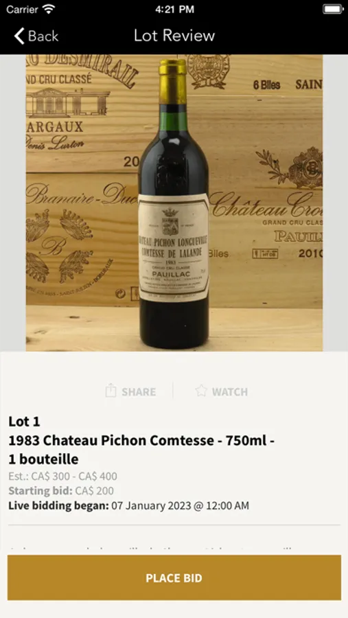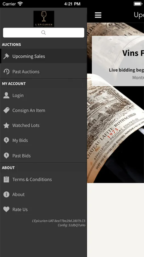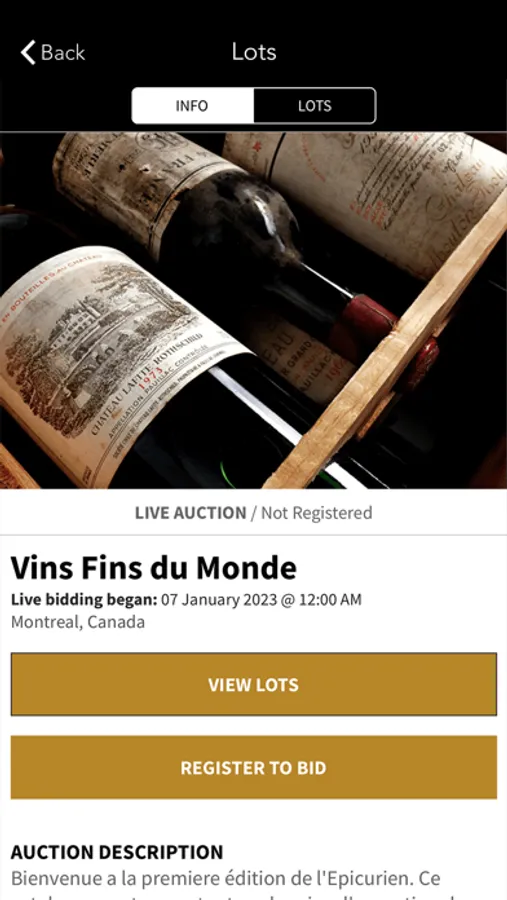 With the L'Epicurien app, you can preview, watch and bid in our auctions from your mobile / tablet device. Participate in our sales while on-the-go and gain access to our following features:
