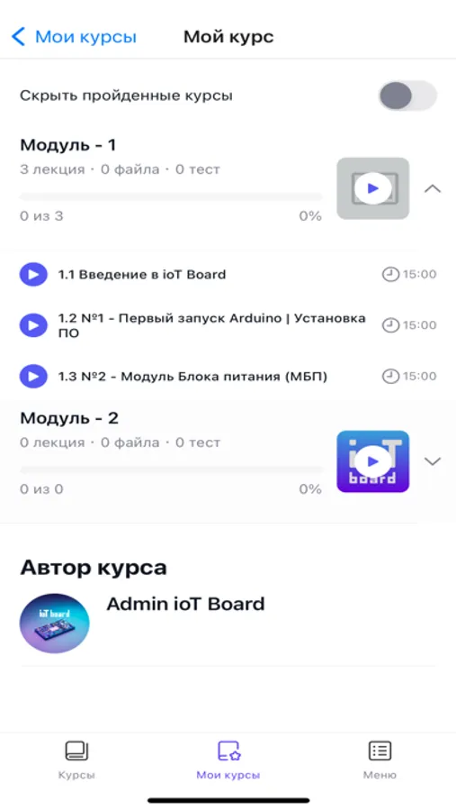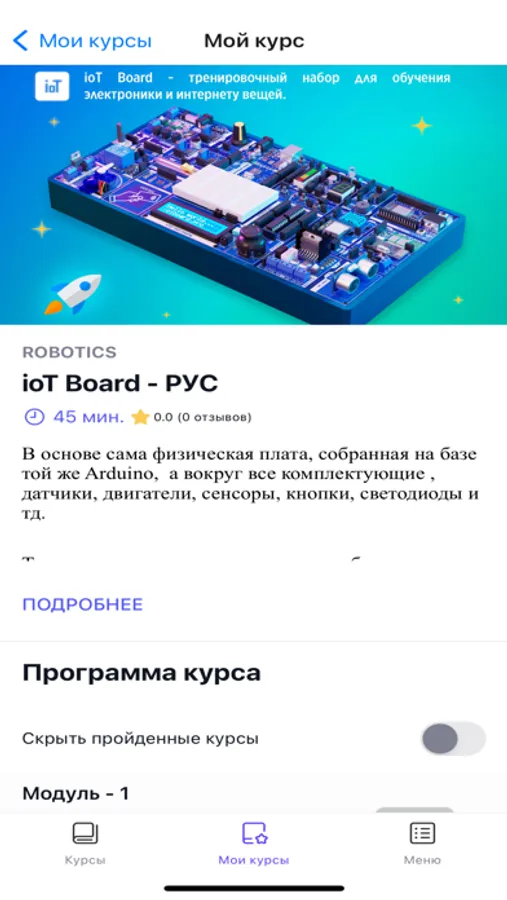 Вы можете подключить свои устройства ioT Board и проходить любые курсы.