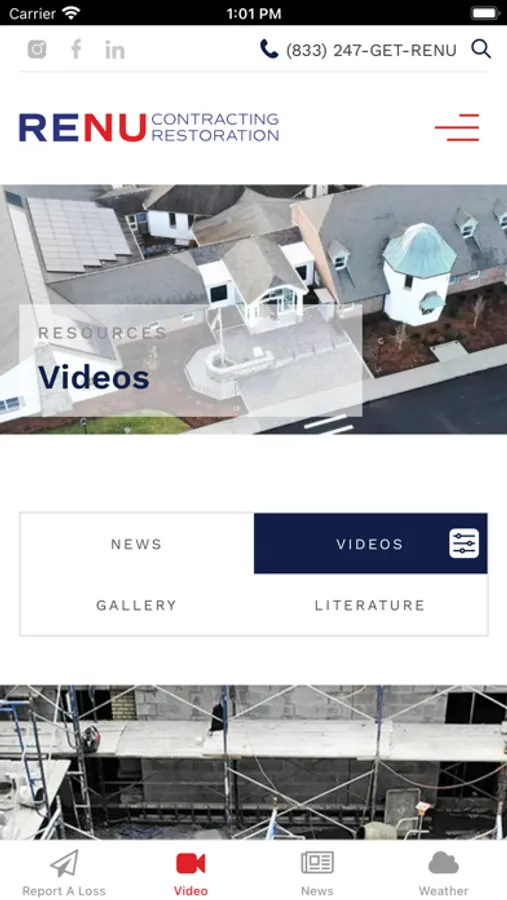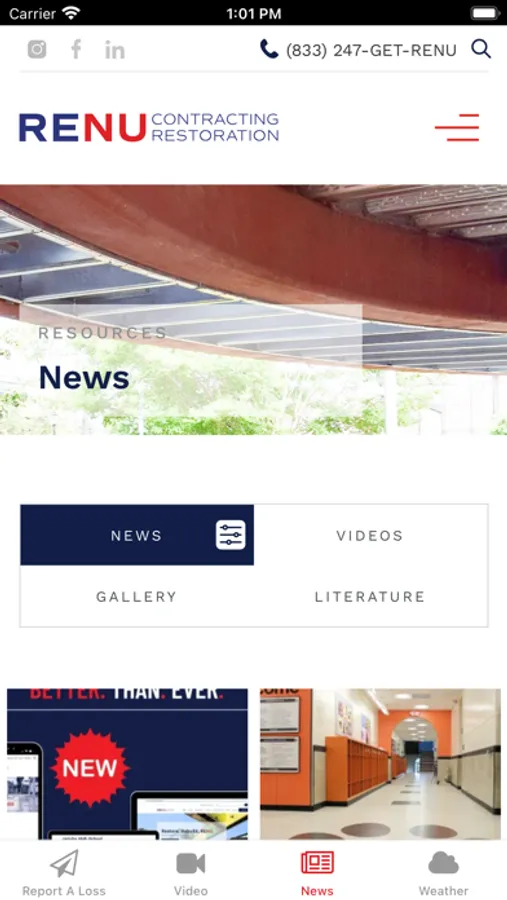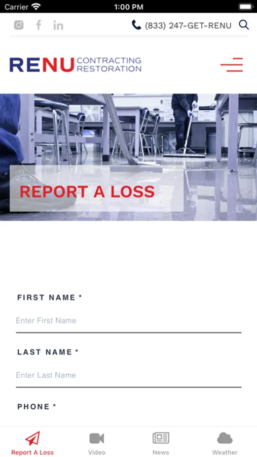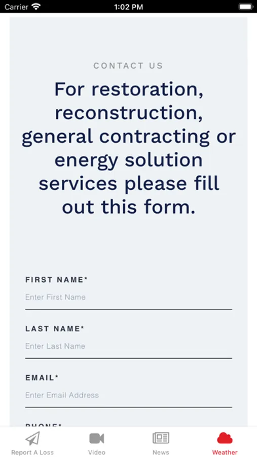 This emergency services app allows users to report a loss for fire, water smoke or mold damage 24/7. The app includes access to our enhanced photo galleries and videos and a chance to utilize our weather service with event notifications to connect with customers when disaster may strike.